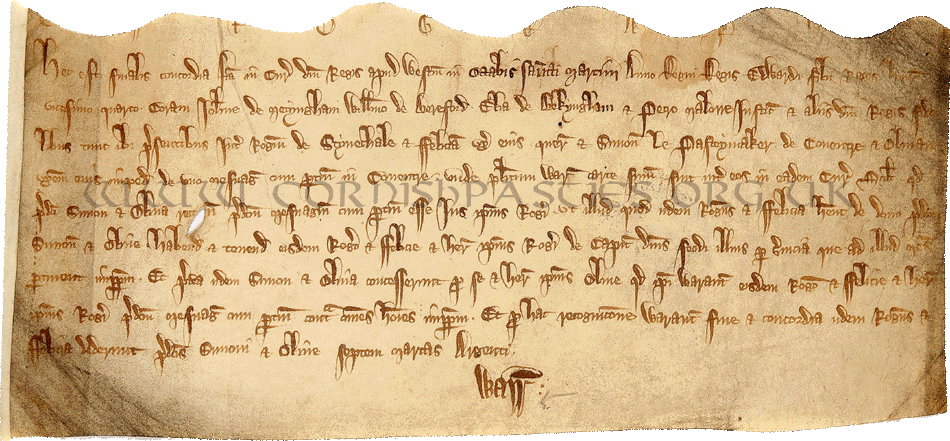 My learn�d friend, Mr. Henry "Oggy" Trelissick, a fellow pasty scholar and Member of the Ancient Order of Pasty Antiquarians is studying the original document with a view to preparing a full transcription at a later date.
