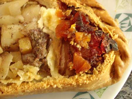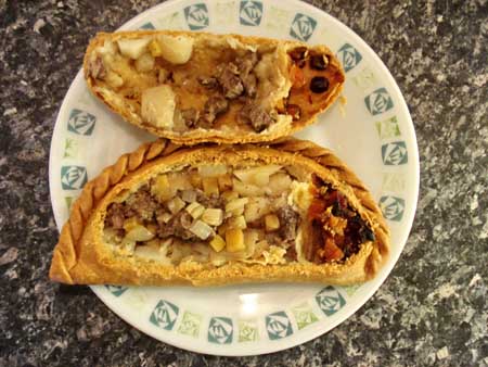 After much discussion and thought within the family about the Cornish pasty, I believe we have come up with a better version of the pasty with "afters", said to be the traditional Cornish miners' pasty.
