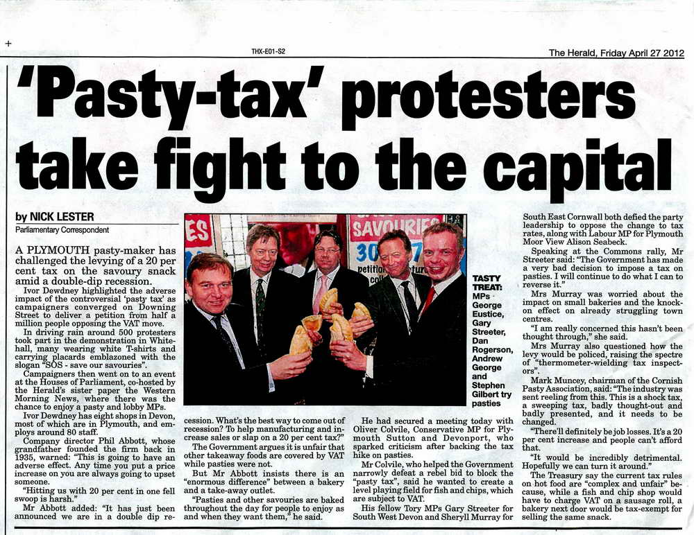 Pasty tax protesters take fight to the capital, Plymouth Herald, Fri. 27 April 2012