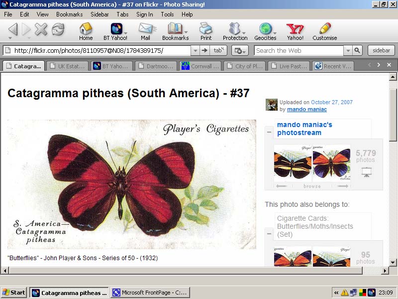 It is bleddy strange that just about the only pictures we can find of the Black Night Hawk Moth seem to quickly disappear from the electric internet. That being so, we have got a screen image that shows the moth out there somewhere (I am told), again, it is a cigarette card. It seems the cigarette people know about the moth even if the scientists don't .....